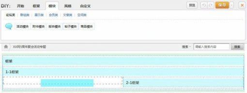 創建新專題后就會自動的進入該專題的DIY界面,對比門戶DIY界面專題的DIY界面更像裝扮個人空間的DIY界面,增加了風格和自定義選項,更加方便的個性化和美化專題頁面;(如圖4)