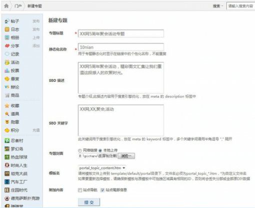 靜態化名稱:用于專題靜態化時顯示在鏈接中的個性化名稱,不能重復;
